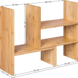 SONGMICS Moduláris rendszerező 3 állítható tároló formával, bambuszból, 65x15x40 cm, barna