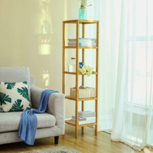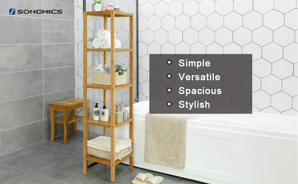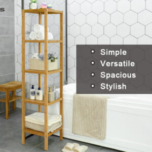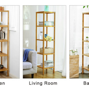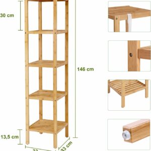 SONGMICS Bambusz tárolópolc, 5 polc, konyhába vagy fürdőszobába, 146x33x33cm, natúr barna