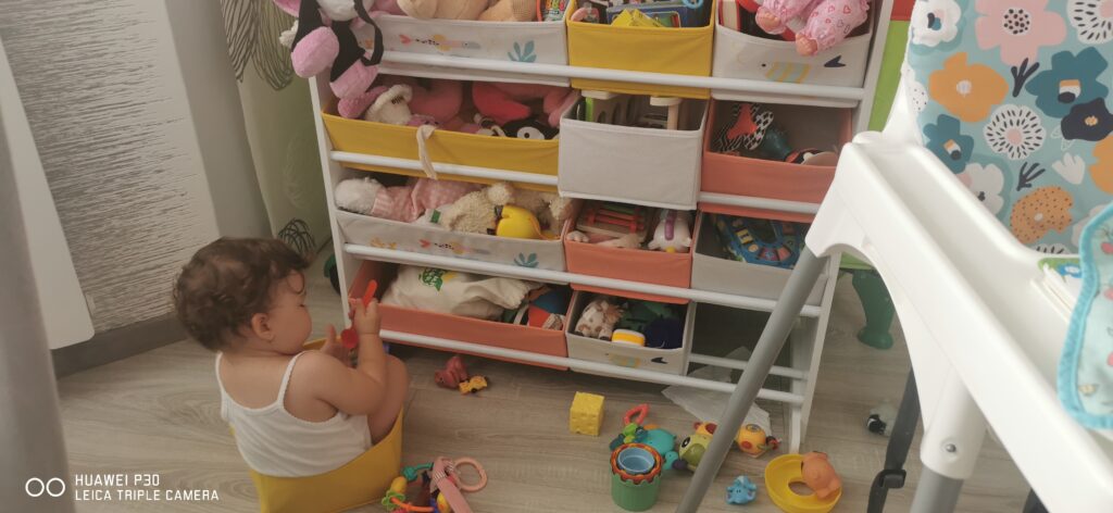 Dulăpiorul organizator, este super animat, drăguț, destul de încăpător, și stabil. Noi ne-am rânduit cât de cât jucăriile actuale. Fetița este super încântată, ca își alege jucăriile de pe rafturi. Sau folosește cutiile pe post de……