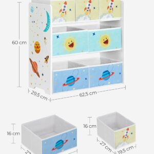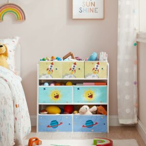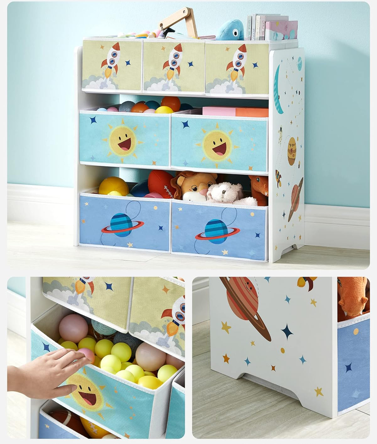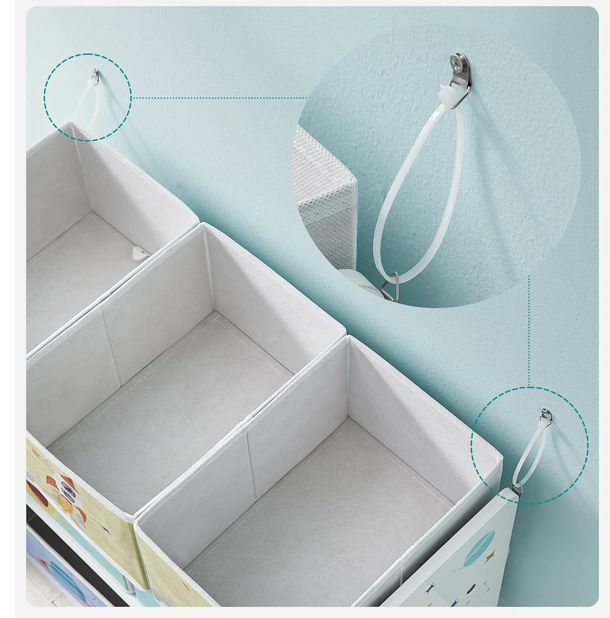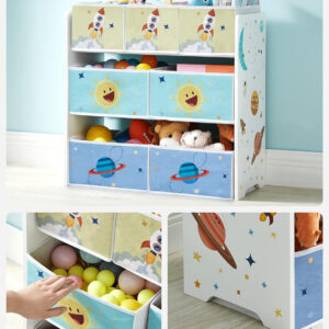 Ez a gyermekpolc 4 nagy dobozzal és 3 kis nem szőtt szövet dobozzal van felszerelve, és tárolóhelyet biztosít különböző méretű tárgyak, például plüssjátékok, építőelemek és könyvek tárolására.