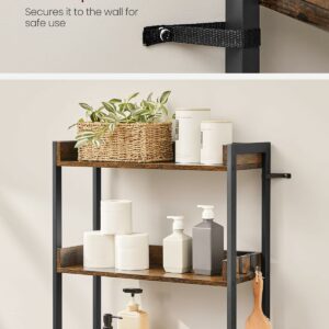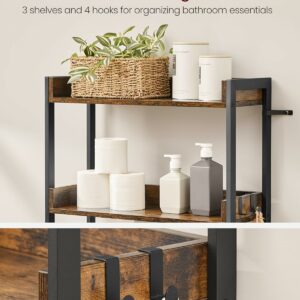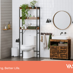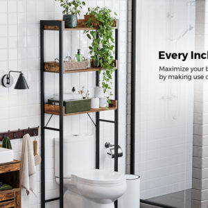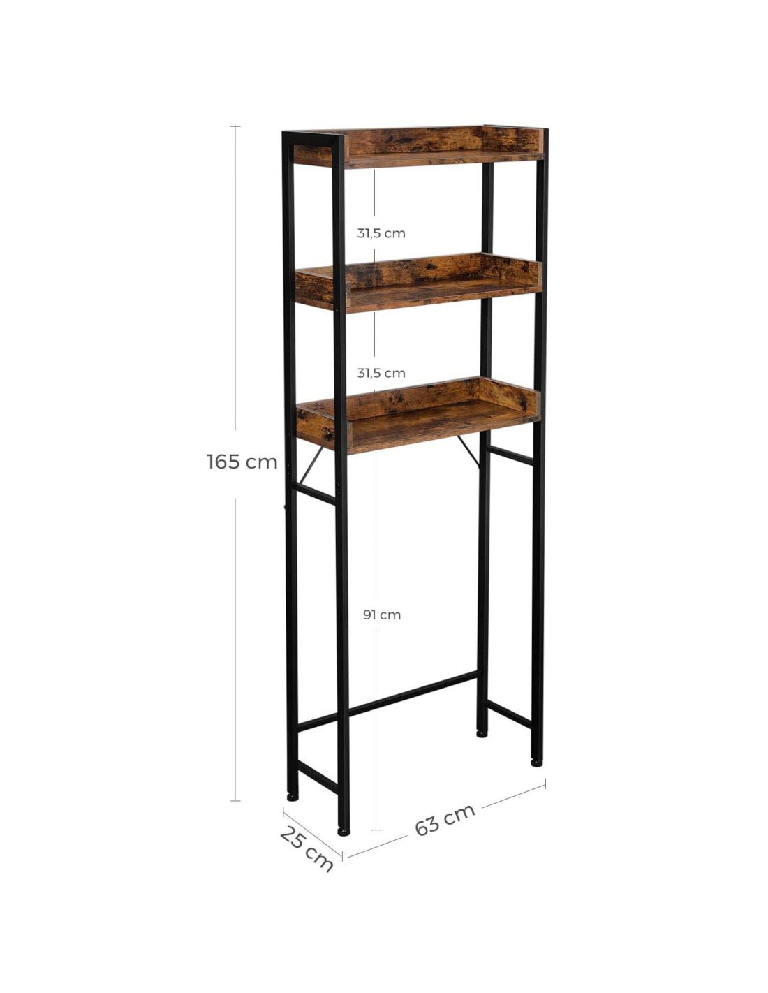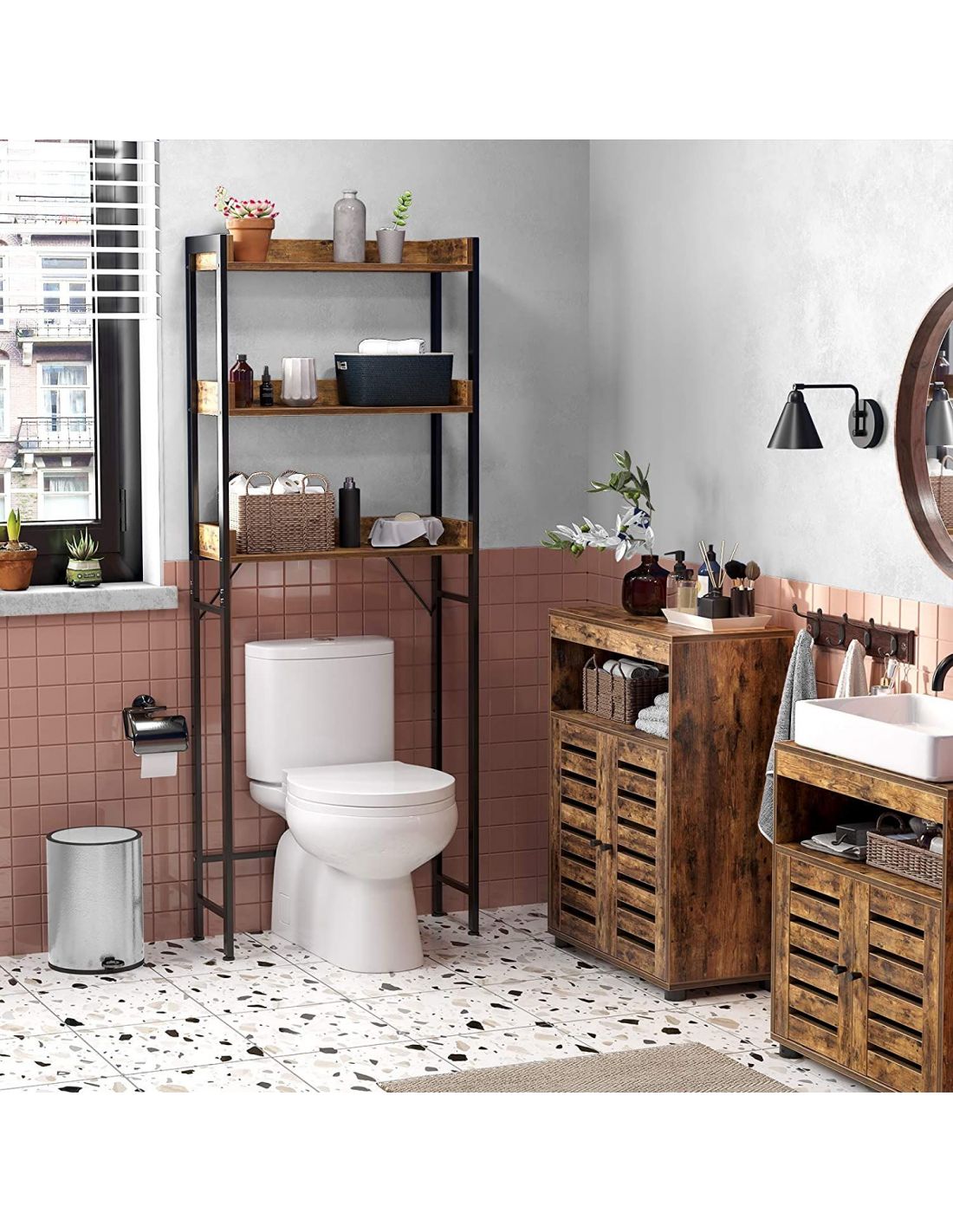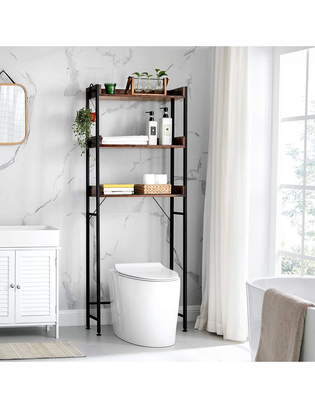 Ez a rusztikus barna és fekete színekkel és letisztult vonalakkal rendelkező, ipari bájjal rendelkező, WC feletti fürdőszobai rendező könnyedén egyedi karaktert varázsol terébe.