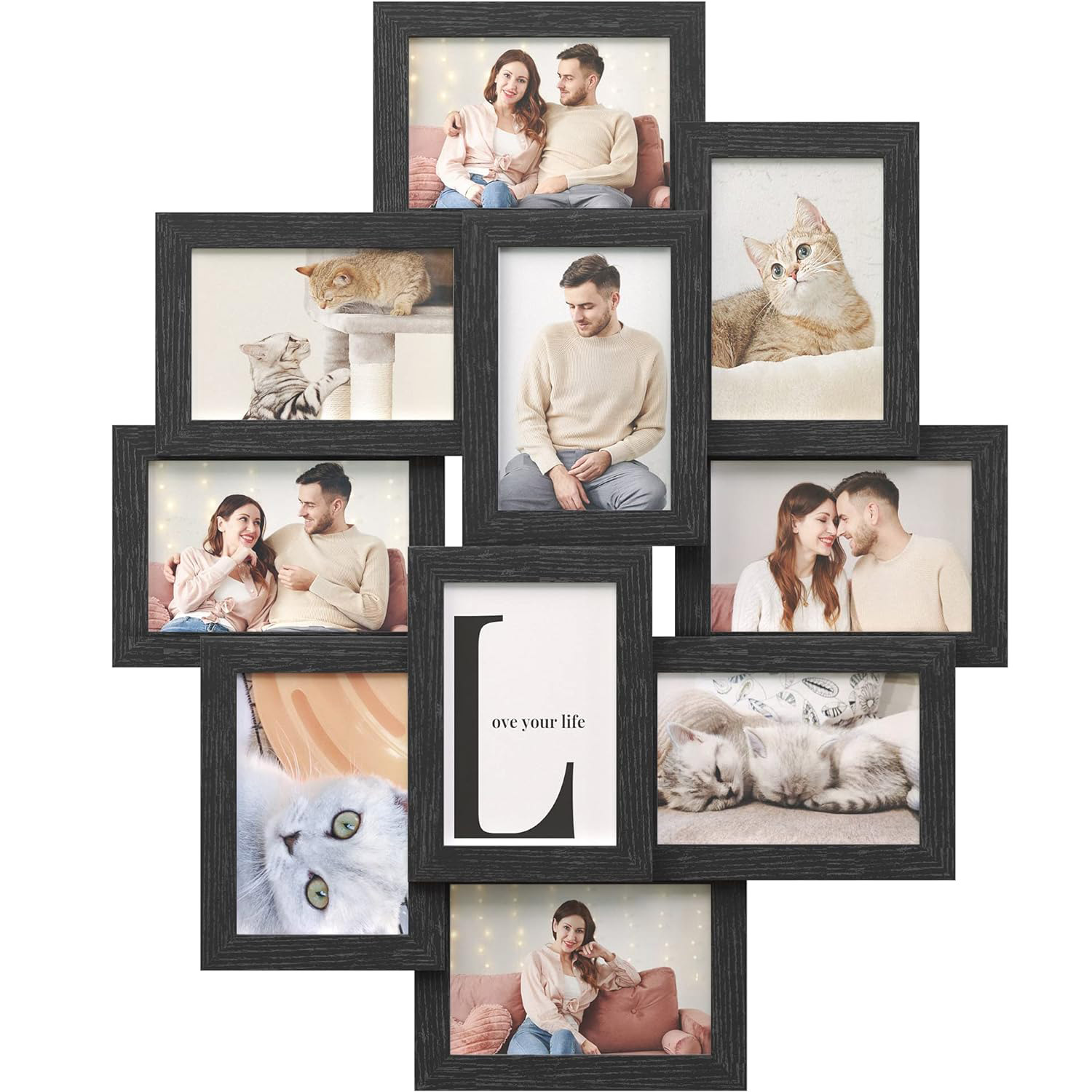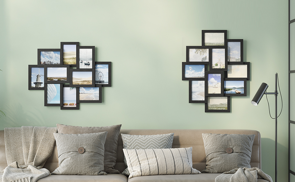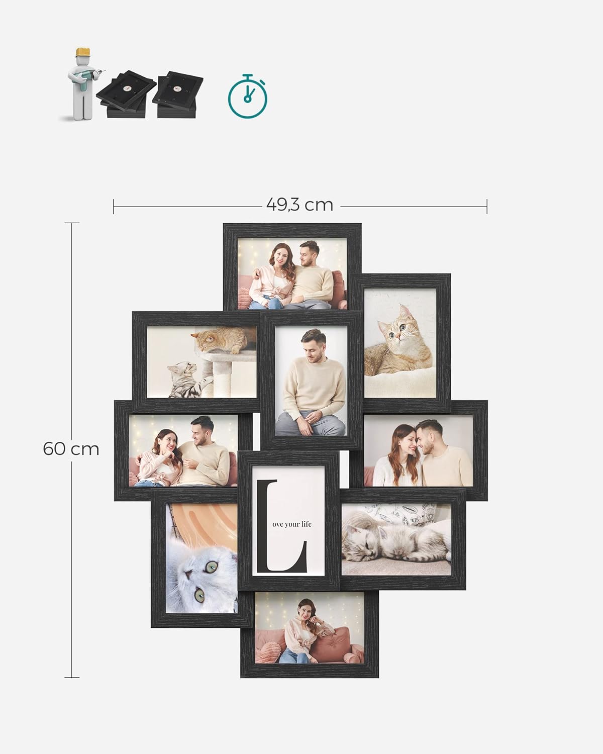 SONGMICS Rama foto de perete din MDF, colaj de 10 fotografii, 60x49cm, negru