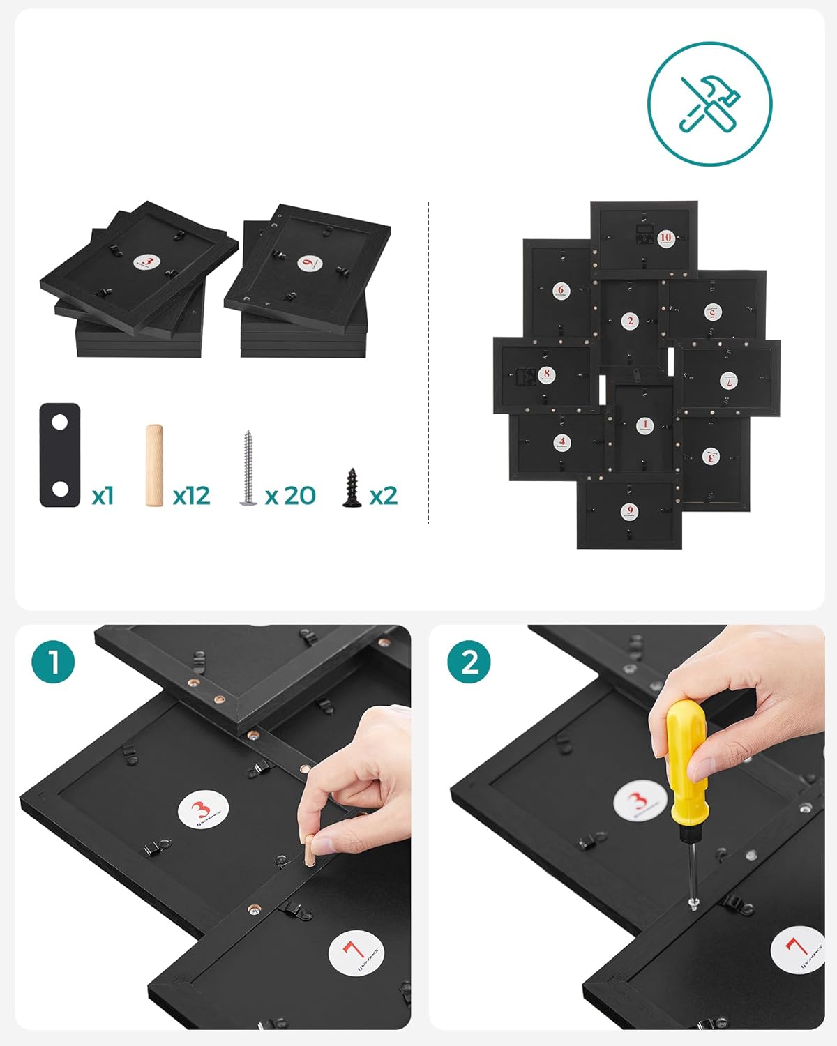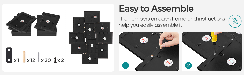 Asamblare usoara si convenabila pentru schimbarea fotografiilor – Pur si simplu rotiti clemele mici de pe spate; este inclus un manual de instructiuni ilustrat; asamblarea este super usoara.