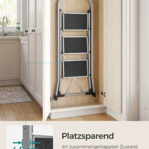 Cand este pliata, cu o latime ingusta de numai 4,5 cm, poate fi plasata chiar si in colturi sau in spatiile dintre pereti si dulapuri; cu un maner, treapta pliabila (5,5 kg) este foarte comod de transportat.