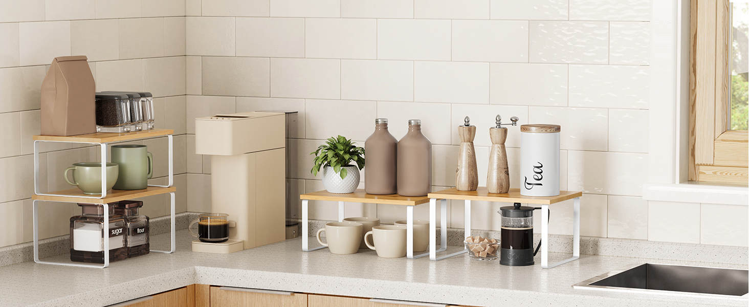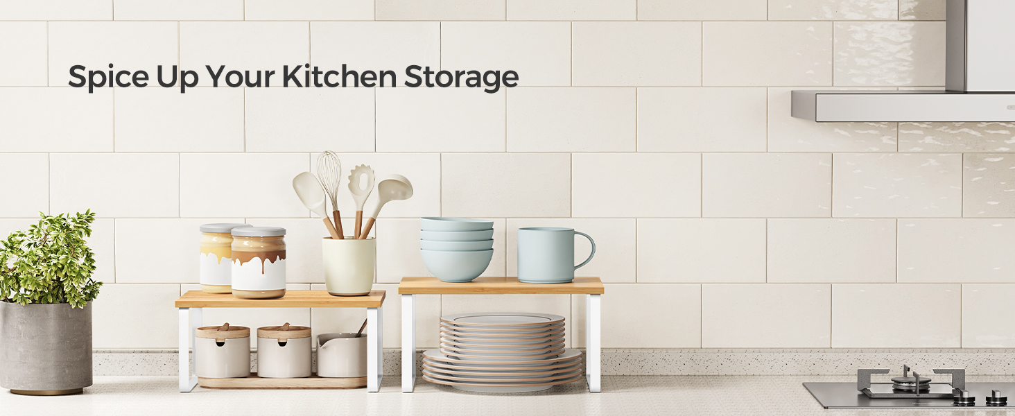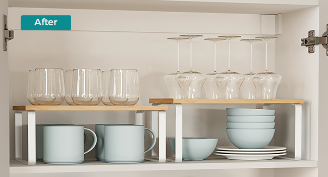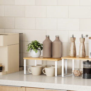 Cu designul lor unic, aceste organizatoare de rafturi pot fi stivuite unul peste altul, imbinate, folosite separat sau chiar in forma de L. Ajustati-le cum doriti pentru a se potrivi perfect spatiului dvs. din bucatarie.