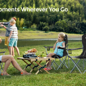 Aceste doua scaune pliabile de camping raspund nevoilor diferite – pescuit langa rau, plaja dupa-amiaza pe terasa, drumetii sau spectacole de fotbal, toate fara probleme.