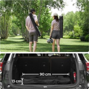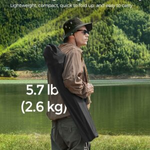 Scaunul pliabil compact cantareste doar 2,6 kg si poate fi pliat si depozitat in geanta de transport inclusa (dimensiune pliat: 13 x 90 x 13 cm), astfel incat sa il puteti aseza cu usurinta in masina sau sa-l agatati de rucsac.