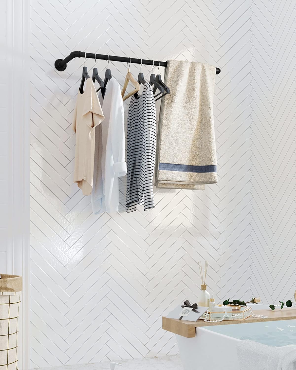 30 cm távolság a faltól: A nagyobb távolság megakadályozza, hogy az akasztók a falhoz érjenek, így könnyedén felakaszthatja és leveheti a ruhákat.