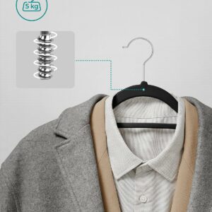 A tartós ABS műanyagból készült vállfak vékonyak, de nagyon tartósak; minden akasztó legfeljebb 5 kg statikus teherbírással rendelkezik, így a nehéz télikabátokat is gond nélkül fel lehet akasztani.