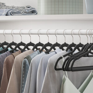 Carligele solide placate cu metal de pe umerase se pot roti la 360°, astfel incat, chiar daca hainele dvs. sunt agatate in directia gresita, le puteti intoarce cu usurinta fara a fi nevoie sa scoateti hainele.