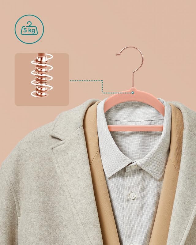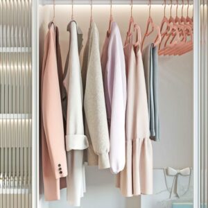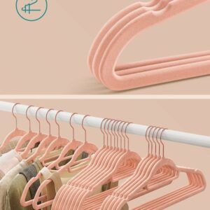 50 darab kiváló minőségű bársony vállfából álló készlet fényes rózsaszín arany kampóval, tartós és nehezen törhető, és jobb módja a ruhatárad rendezésének.