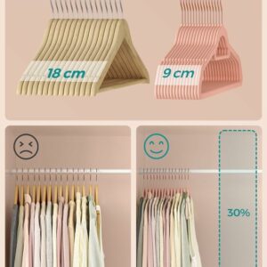 Csúszásgátló felület: A vállfák bársonyos felülete növeli a súrlódást, a vállakon lévő csúszásgátló barázdák pedig megakadályozzák a ruhák elcsúszását – még a selyemingeknél is.