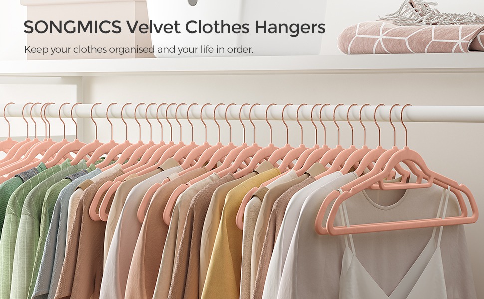 Helytakarékos: minden bársony akasztó vékony profillal rendelkezik, így több ruha akasztható ugyanabban a szekrényben; a központi rúd sálak vagy nyakkendők számára használható.