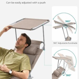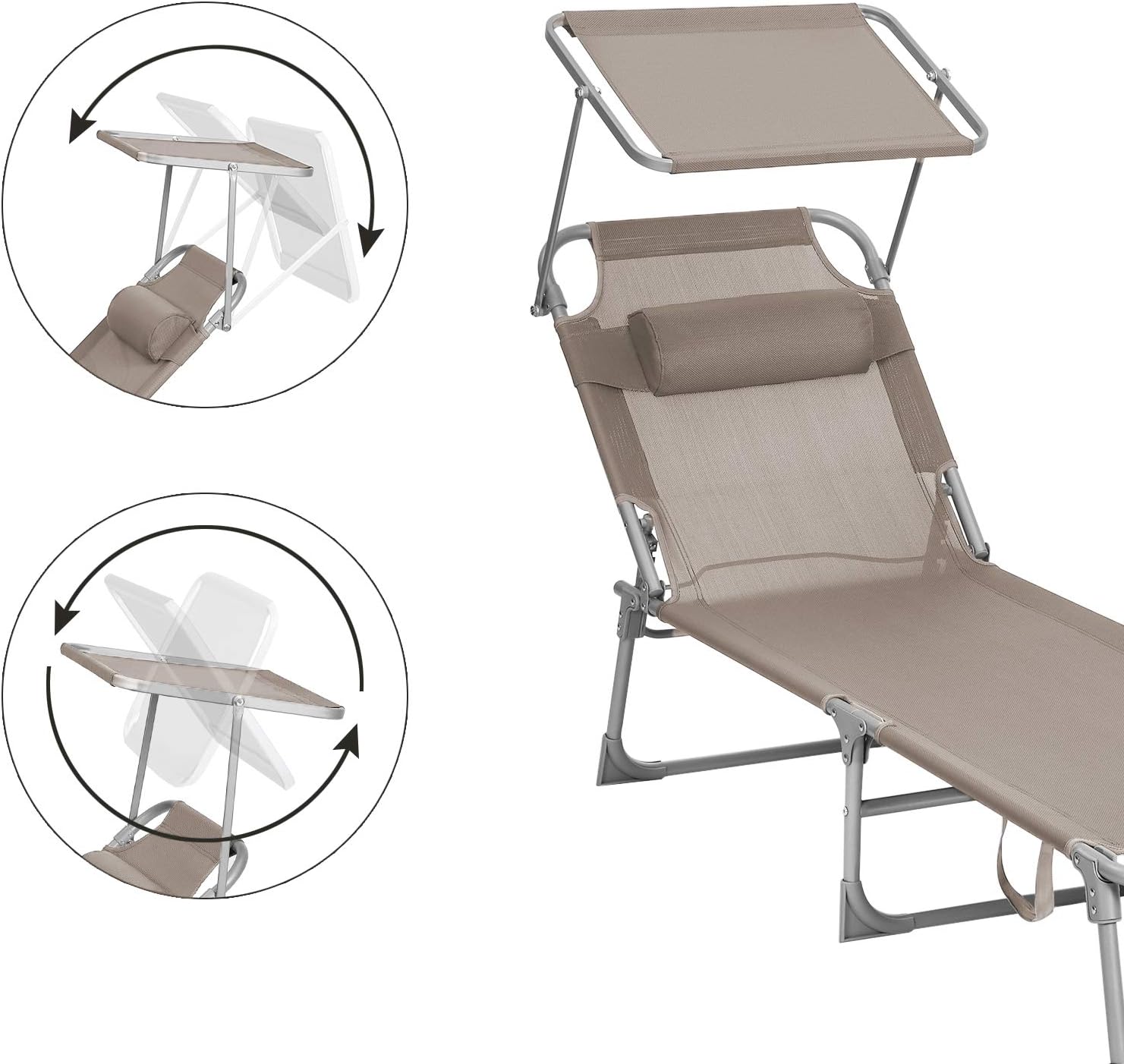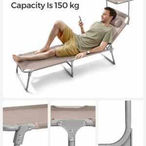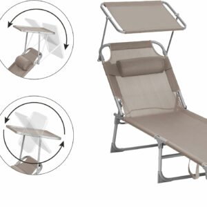 Acest sezlong, cu o tesatura sintetica respirabila, impiedica umezeala sa se ataseaze de scaun. Relaxati-va in voie, chiar si in timpul celor mai fierbinti zile de vara. Acest sezlong are o umbrela de soare, care va permite sa cititi reviste in curte in timp ce va bucurati de soare. Puteti regla cu usurinta unghiul parasolarului cu mana, fara a fi nevoie sa va ridicati.