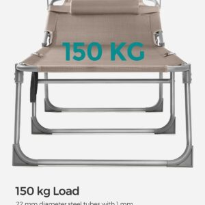 Acest sezlong solid, cu cadrul sau din otel acoperit cu pulbere si articulatiile intarite, poate sustine pana la 150 kg si ramane stabil datorita picioarelor antiderapante.