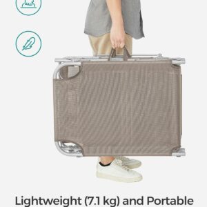 Atunci cand este pliat, acest sezlong masoara doar 17 x 53 x 73 cm, ceea ce il face convenabil de adus la piscina sau pe terasa. Cele doua manere il fac usor de transportat.