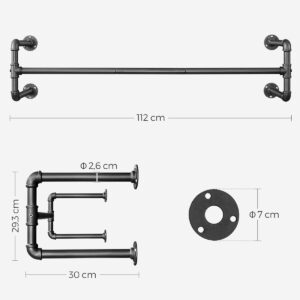 Szabadíts fel egy kis helyet a padlón: a gardróbban felhalmozott ruhákat vagy a fiókban lévő rendetlen sálakat szeretnéd rendbe tenni? Próbáld ki ezt a SONGMICS ruhatartót! 112 cm-es hosszával és falra szerelhető kialakításával rengeteg ruha és kiegészítő elfér benne, miközben helyet takarít meg a szobában. Ezek a tartós ruhatartók kiváló minőségű acélból készültek. Átmentek a 60 kg-os terhelési próbán.