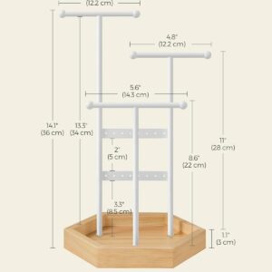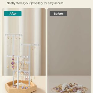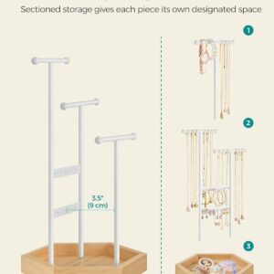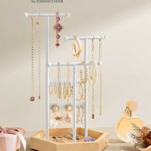 SONGMICS Ékszerrendező állvány, fém kerettel, fülbevaló tartó, karkötő, nyaklánc, gyűrűk, 18x21x36cm, fehér