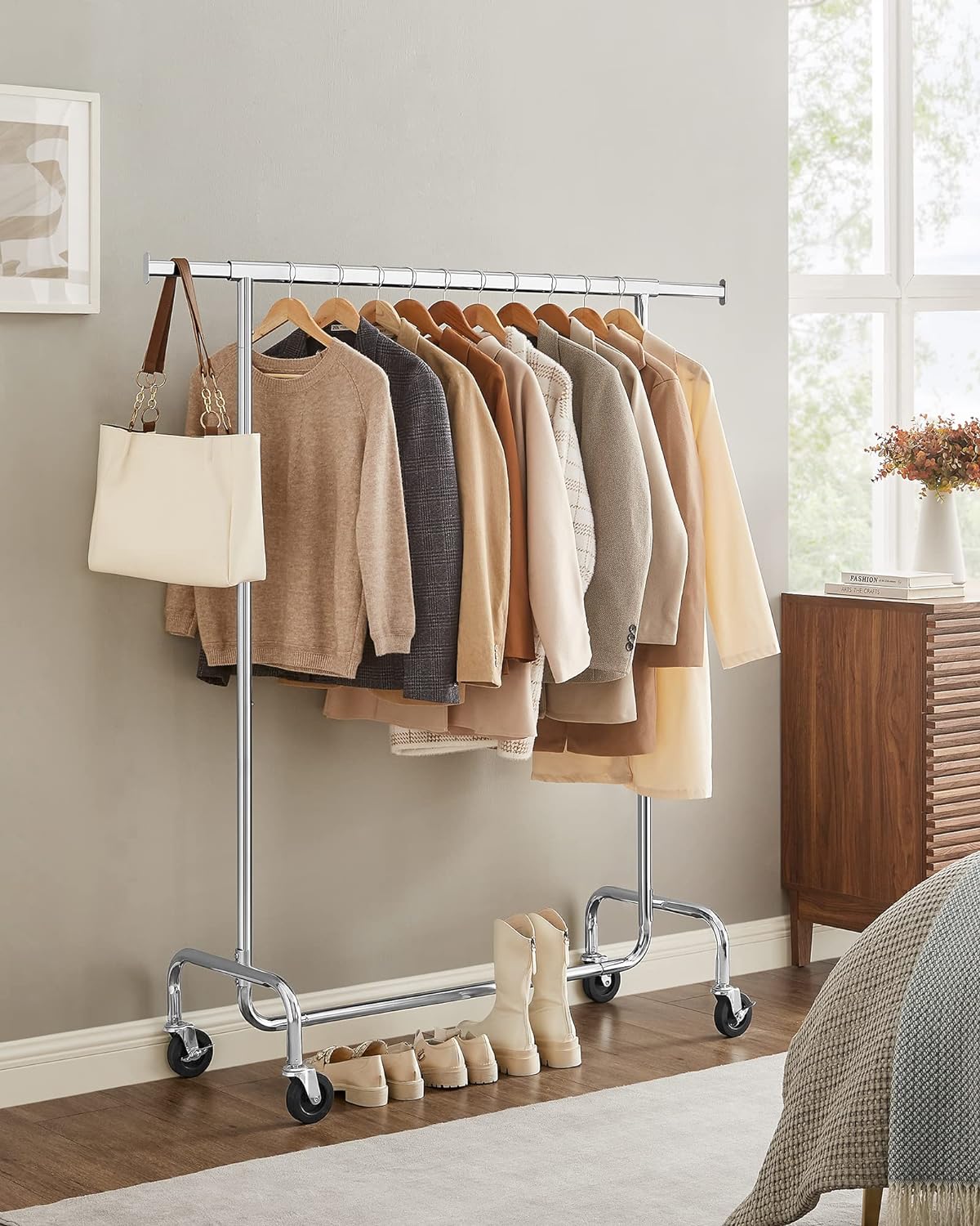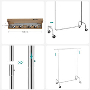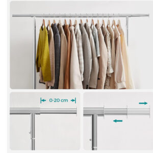 „SONGMICS Ruhatartó kihúzható felső sínnel, kerekeken, állítható szélességben, 45x(110-150)x160cm, rozsdamentes ezüst” értékelése elsőként