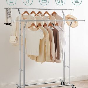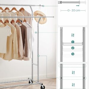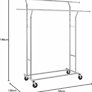 Usor de mutat si blocat: Glisati fara efort sina dubla pentru haine in orice camera din casa datorita celor 4 roti pivotante. 2 dintre roti sunt blocabile, asa ca puteti pastra si rack-ul intr-un singur loc