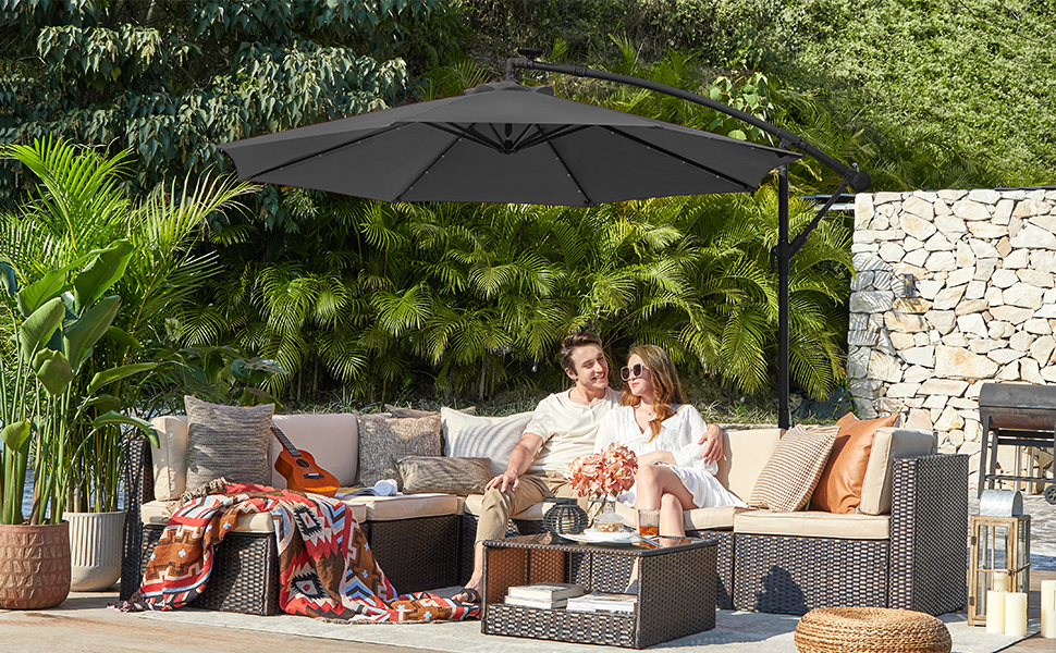 „SONGMICS Umbrela de gradina cu brat lateral banana, 300cm, cu iluminare LED solara, gri” értékelése elsőként