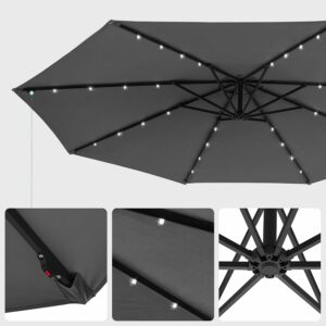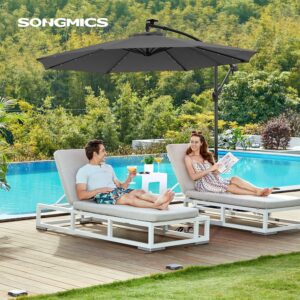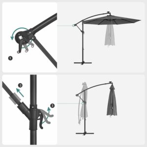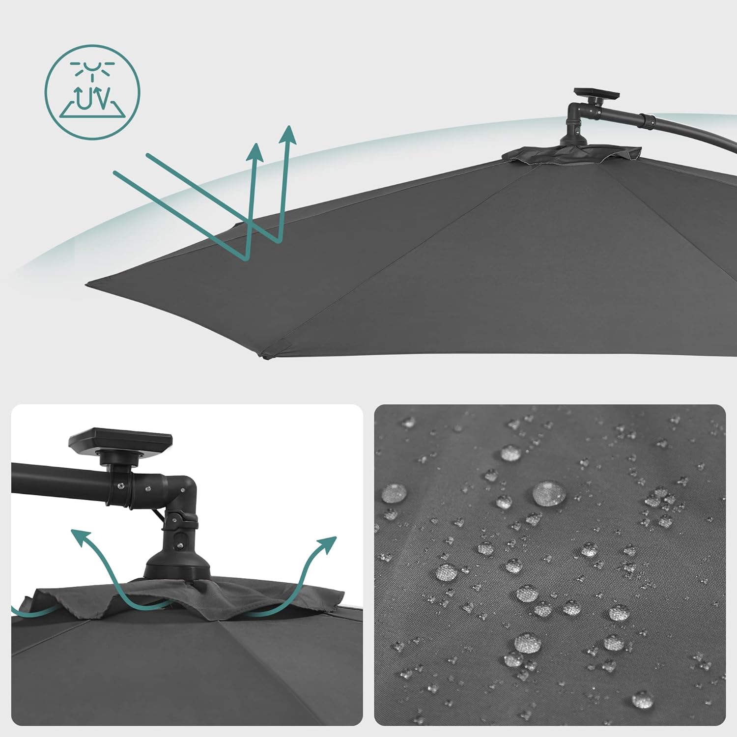 SONGMICS Umbrela de gradina cu brat lateral banana, 300cm, cu iluminare LED solara, gri