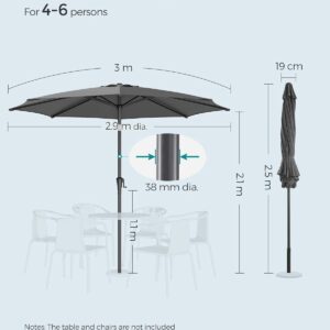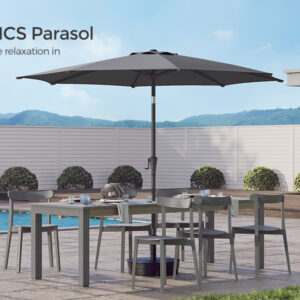 Ezzel a 3 m-es kerti esernyővel 4-6 fő árnyékolhat a kertben, a teraszon, a medence szélén, az erkélyen vagy máshol.