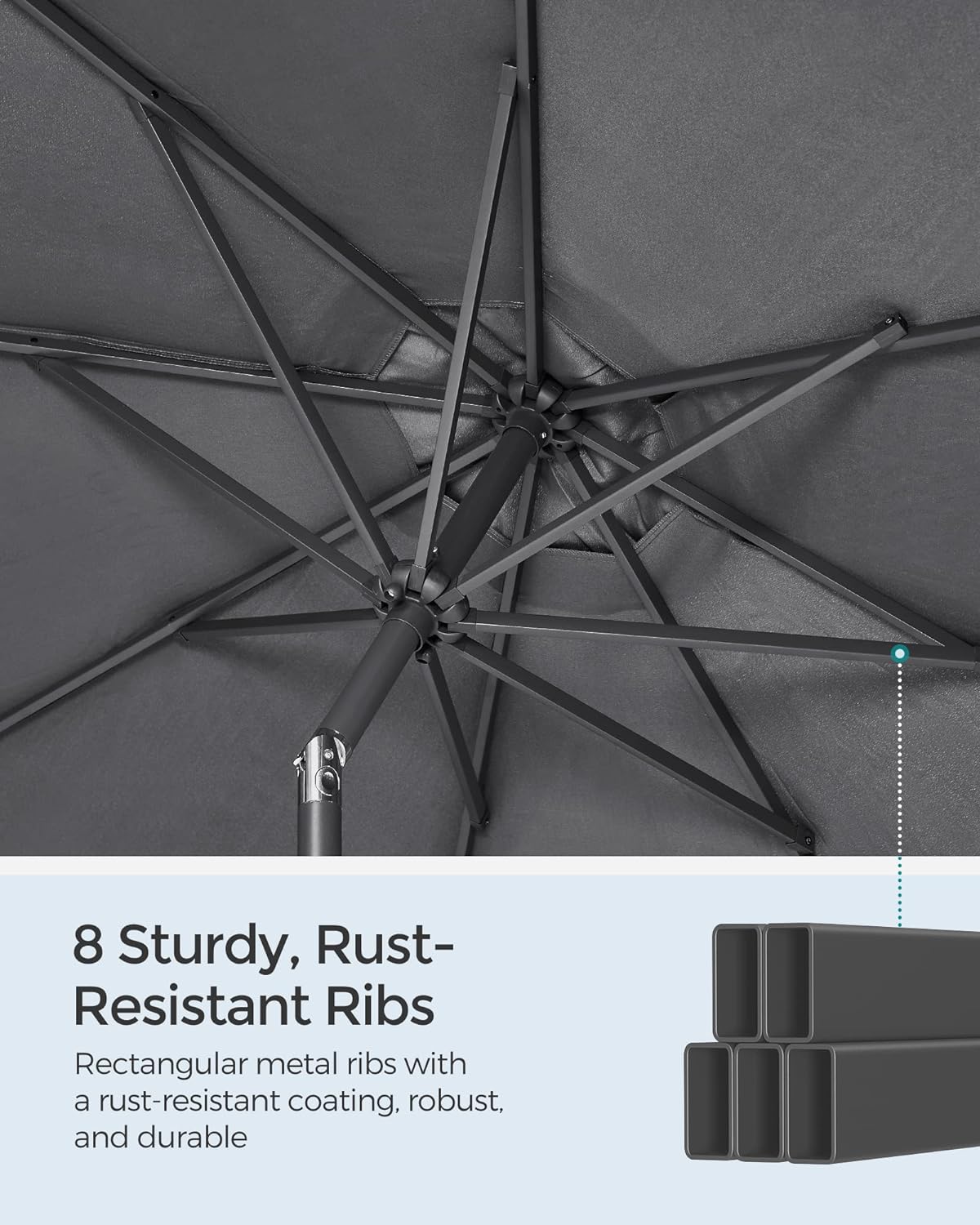 Ennek a kerti esernyőnek a bordái erősek és tartósak, mivel minőségi porszórt, rozsdaálló acélból készültek a hosszú élettartam érdekében.