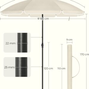 SONGMICS Umbrela terasa gradina sau plaja, cu inclinare, husa, diametru 160cm, bej