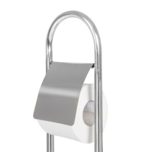 Peria de toaleta de sine statatoare cu suport integrat pentru role este realizata din materiale de cea mai buna calitate. Suportul argintiu arata ingrijit si va functiona in multe stiluri de baie. Standul are o baza stabila. Totul este usor, dar si foarte stabil. Datorita greutatii sale reduse, puteti schimba cu usurinta pozitia standului. In interiorul recipientului se afla un capac sub forma unui recipient detasabil care colecteaza apa care picura. Datorita acestui lucru, puteti pastra cu usurinta si rapid baia curata. Standul a fost realizat intr-un stil clasic, cu o combinatie de tehnologii moderne. Perfect pentru fiecare gospodarie. Un avantaj suplimentar al acestui produs este peria inlocuibila – daca este necesar, poate fi desurubata si inlocuita cu una noua.