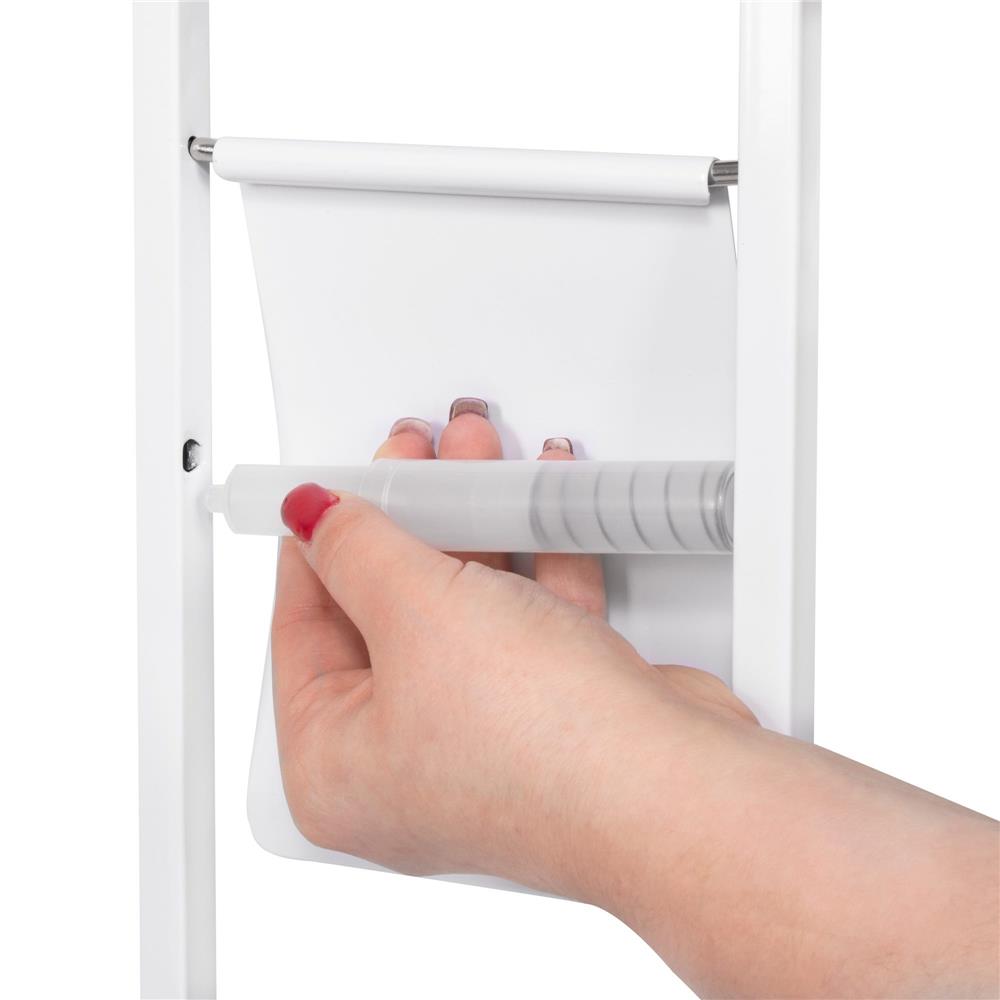 Peria de toaleta de sine statatoare cu suport integrat pentru role este realizata din materiale de cea mai buna calitate. Suportul argintiu arata ingrijit si va functiona in multe stiluri de baie. Standul are o baza stabila. Totul este usor, dar si foarte stabil. Datorita greutatii sale reduse, puteti schimba cu usurinta pozitia standului. In interiorul recipientului se afla un capac sub forma unui recipient detasabil care colecteaza apa care picura. Datorita acestui lucru, puteti pastra cu usurinta si rapid baia curata. Standul a fost realizat intr-un stil clasic, cu o combinatie de tehnologii moderne. Perfect pentru fiecare gospodarie. Un avantaj suplimentar al acestui produs este peria inlocuibila – daca este necesar, poate fi desurubata si inlocuita cu una noua.