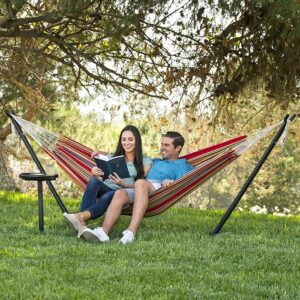 Suport metalic pentru hamac, 300x120x110cm, max 150 kg, cu suport pahare si geanta