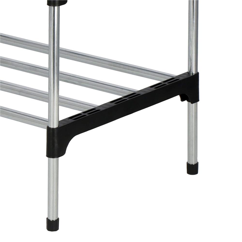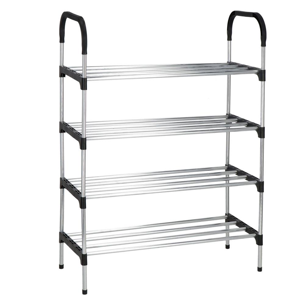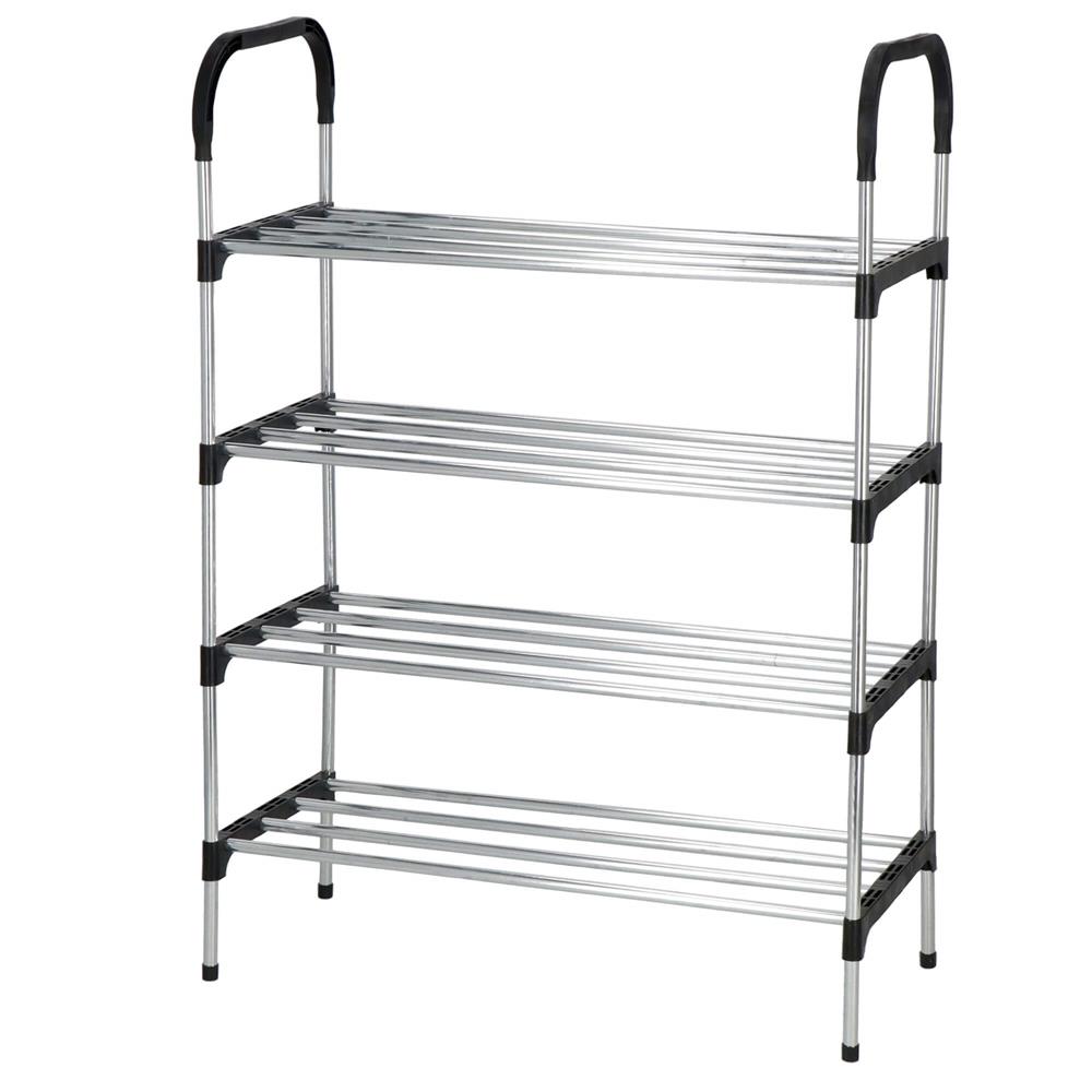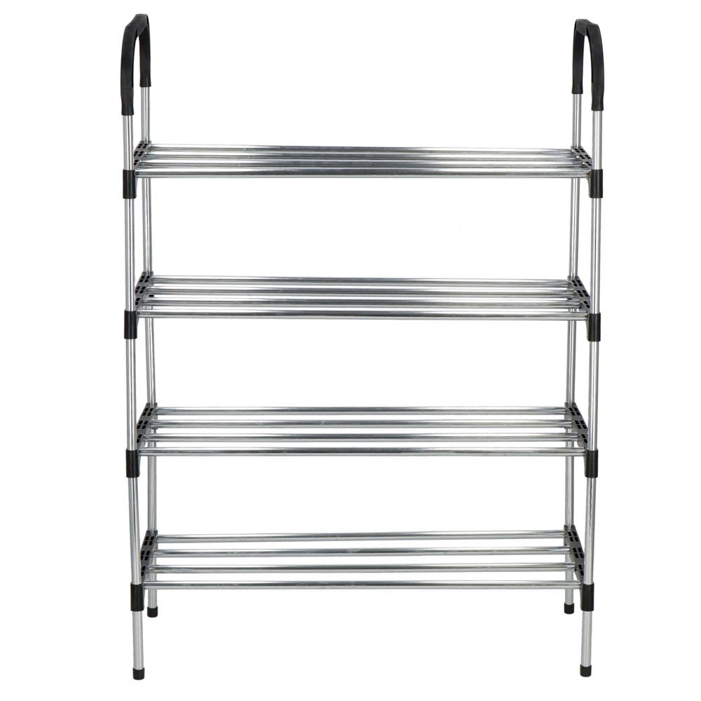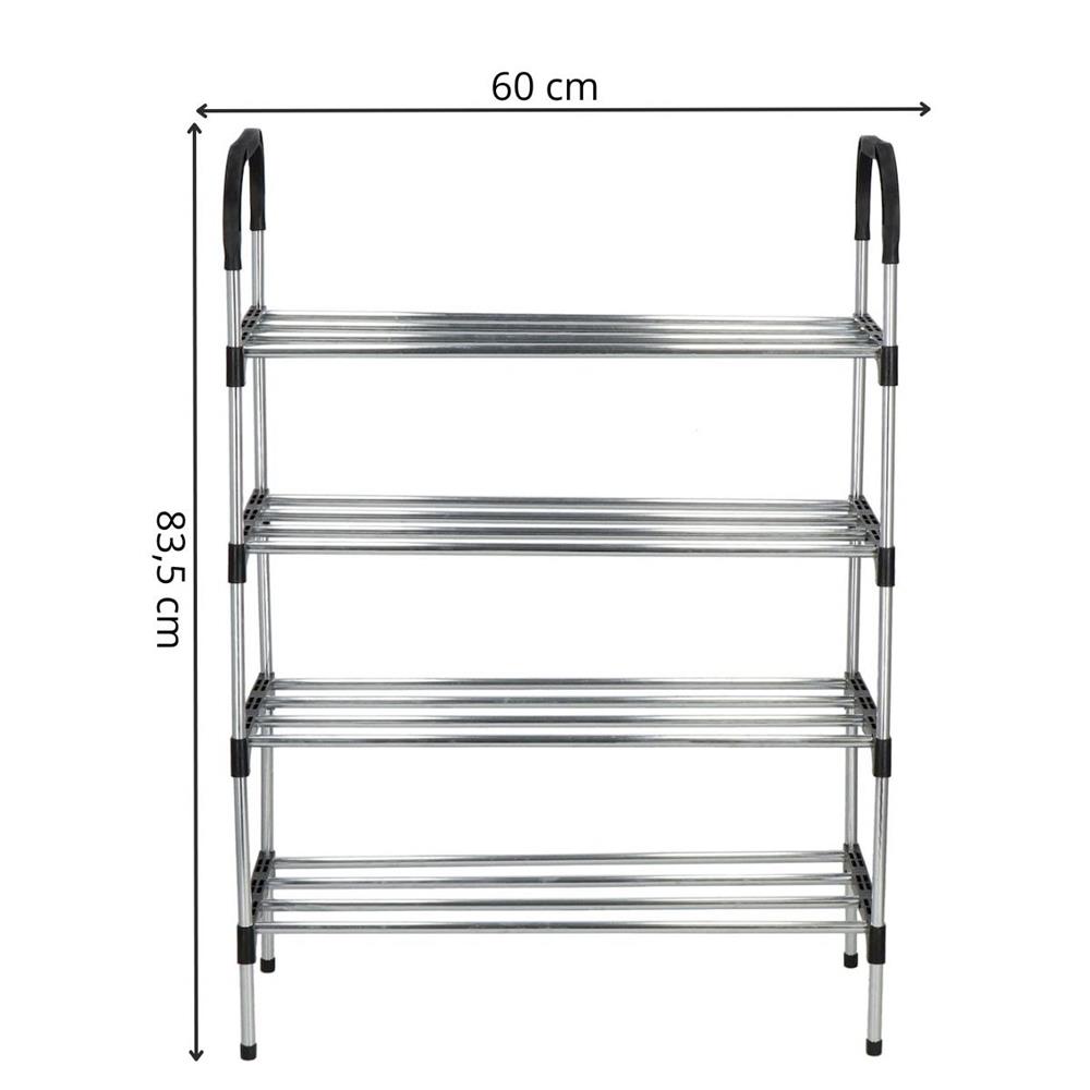 Cipőtartó, 4 polc, fém keret, 84x28x60cm, fekete és ezüst