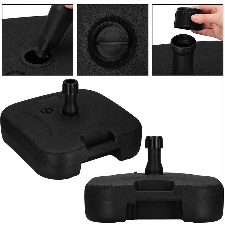 O baza de umbrela de gradina este un element esential. Functia sa principala este de a sustine stabil umbrela , care ofera protectie impotriva soarelui sau a ploii in timp ce va relaxati in aer liber. Este perfect pentru gradini si terase, precum si pe plaje, asigurand stabilitatea umbrelei pe diverse tipuri de teren. Datorita posibilitatii de umplere cu apa sau nisip si a unui maner confortabil, baza umbrelei este usor de asamblat si mutat, ceea ce o face de neinlocuit in timpul intalnirilor de vara in aer liber.