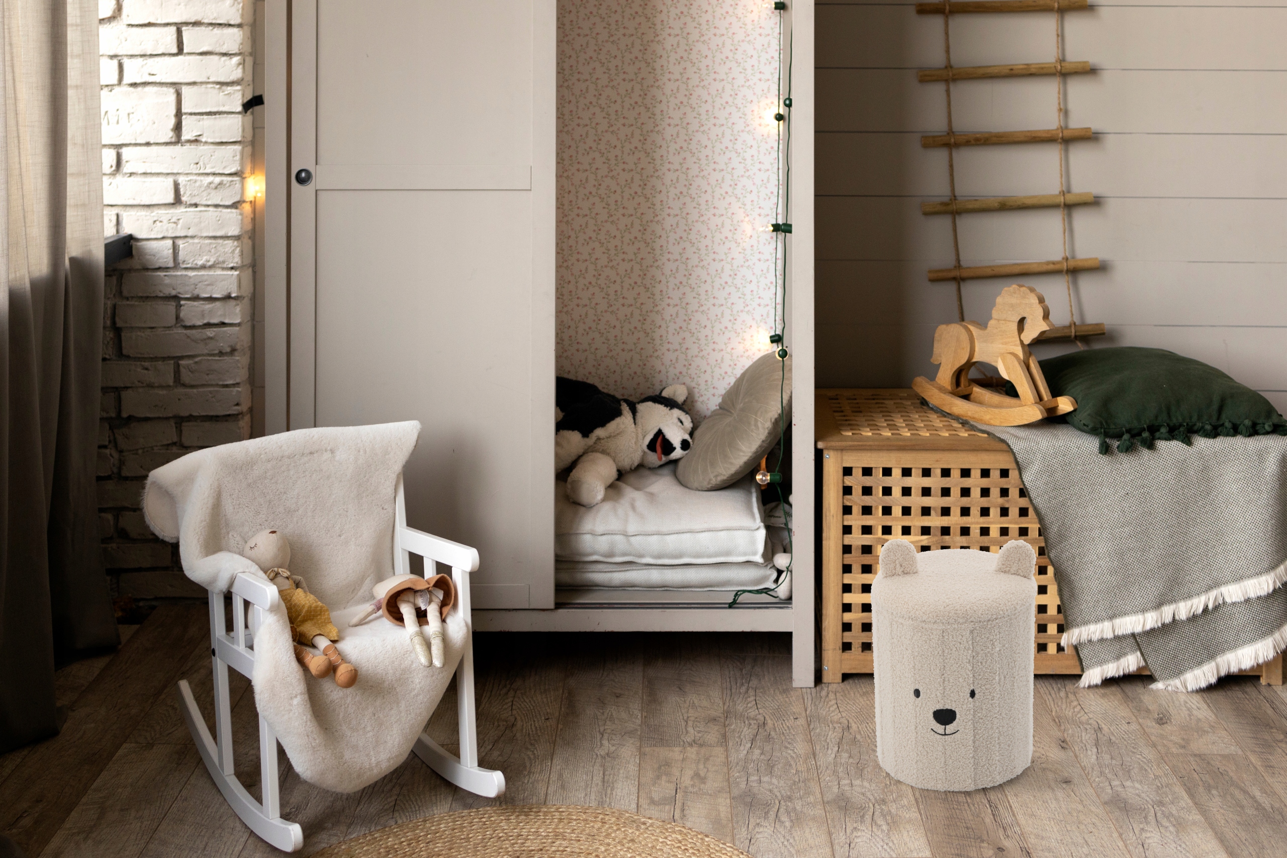 • Tárolási funkció: a zsámoly belseje játékokat, könyveket, kockákat vagy egyéb kiegészítőket kínál a gyermekek számára, segítve a szoba rendben tartását