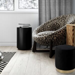 Eleganta si stil: Taburetul rotund impresioneaza prin suprafata sa catifelata, care ii confera un caracter unic. A velúr fényűző megjelenéséről és puhaságáról ismert anyag, amely nemcsak széppé, de tapintásra is kellemessé teszi a bútorokat.