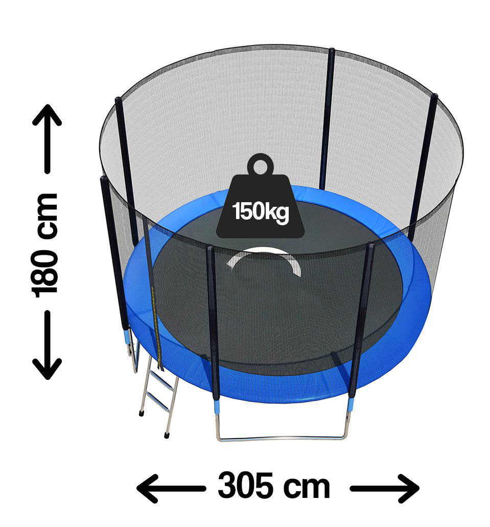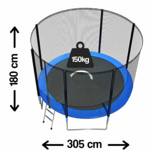Rugalmas polipropilénből és termikusan kötött szénből készült trambulin. Deformációálló acélszerkezet, amely ellenáll a terhelésnek. A horganyzott rugókat speciális szivaccsal bélelt ütéscsillapító anyag borítja, amely biztosítja a biztonságot és megakadályozza a korróziót. A szerkezet acél elemei így védve vannak az időjárás káros hatásaitól. A felhasznált anyagok ellenállnak az UV sugárzásnak, ezért ellenállnak a színfakulással szemben. A trambulin mindkét oldalán cipzárral záródó hálóval van ellátva.