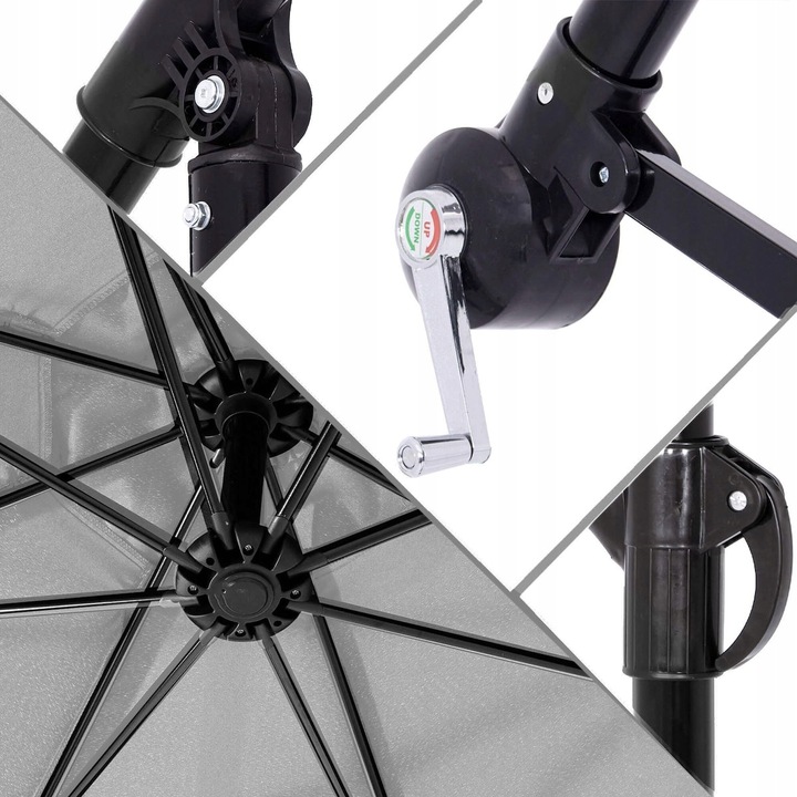 Az esernyő nagy átmérője lehetővé teszi a terasz, erkély vagy kert nagy területeinek árnyékolását és védelmét a napsütéstől vagy a bosszantó esőtől, így lehetőség nyílik a szabad grillezésre, a gyerekekkel való játékra, nagyszámú vendég fogadására egy partin, vagy egy nagy medence vagy játszótér lefedésére.