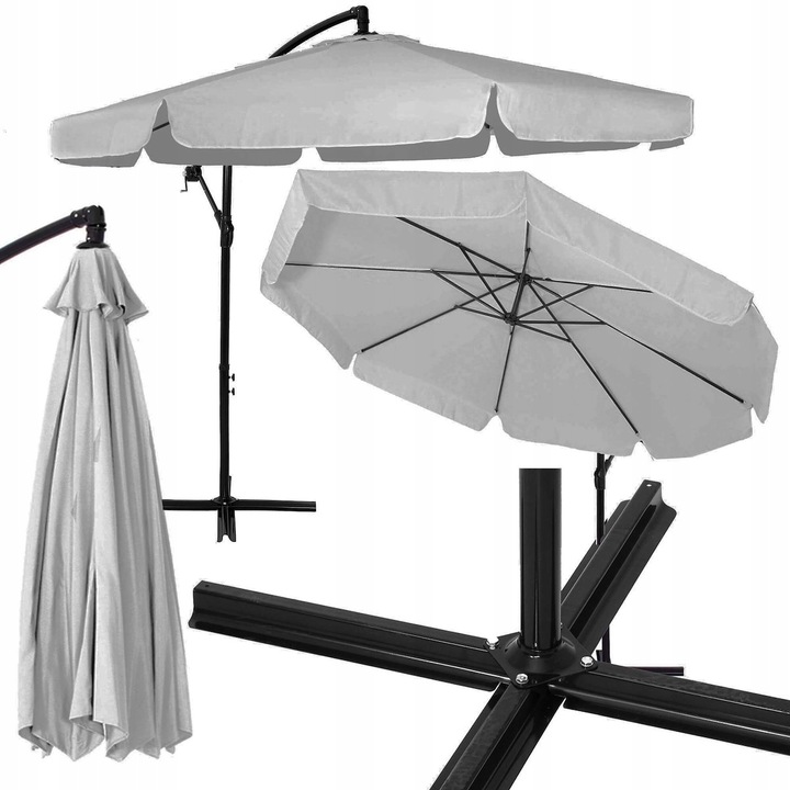 Kerti esernyő oldalkarral, huzattal, 300cm, világosszürke