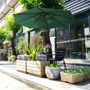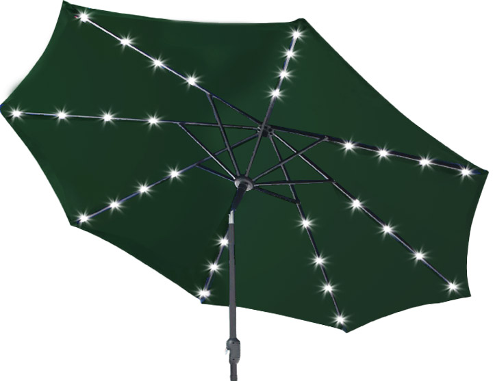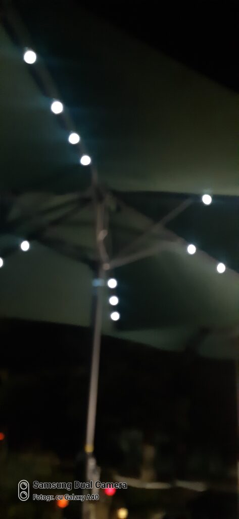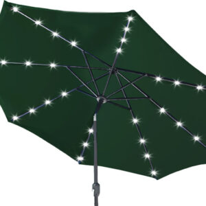 Umbrela este perfecta pentru sezonul de primavara si vara. Poate fi folosita in aer liber, in gradina, pe balcon sau pe terasa. Unii dintre noi aleg intalnirile de familie sau gratarele cu prietenii, in timp ce altii aleg sa se relaxeze singuri cu o carte. Umbrela noastra este perfecta pentru acest tip de activitate, protejandu-va de efectele nocive ale radiatiilor solare. Umbrela este fabricata din material de inalta calitate. Baldachinul este fabricat din material impermeabil. Are o manivela care face ca plierea sau desfasurarea ei sa fie foarte usoara. Produsul nostru este echipat cu un cadru solid din otel acoperit cu pulbere. Exista o gaura speciala de ventilatie in baldachin. In plus, umbrela include o husa impermeabila realizata din poliester negru. Cand se lasa noaptea, puteti ilumina subtil spatiul de sub umbrela datorita iluminarii cu LED-uri, care este incarcata in timpul zilei de un mic panou solar aflat in partea superioara a umbrelei. Luminile sunt amplasate pe nervurile umbrelei.