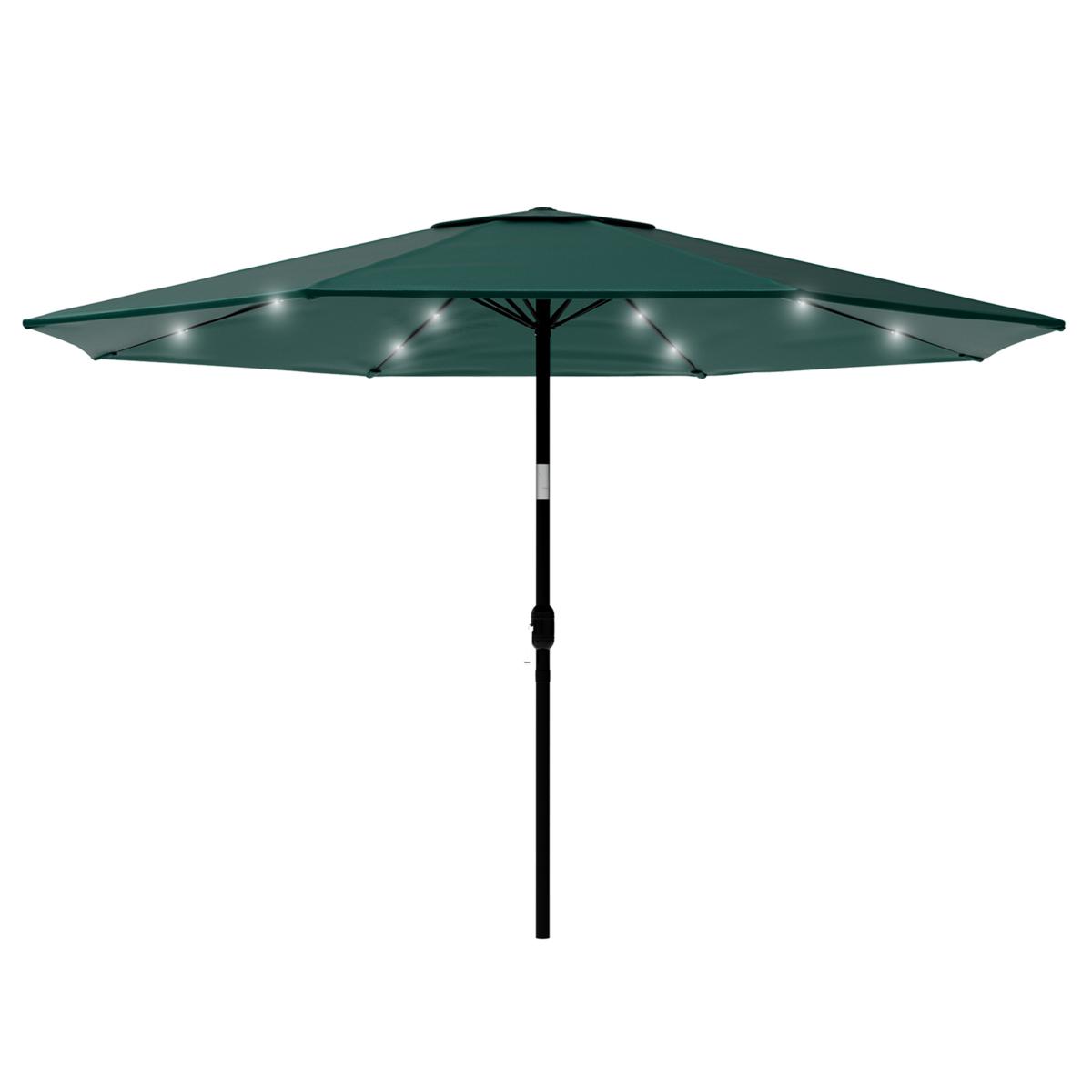 Umbrela terasa gradina, cu inclinare si husa, iluminare LED solara, 300cm, Verde