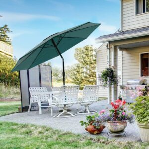 Umbrela terasa gradina, cu inclinare si husa, iluminare LED solara, 300cm, Verde termékről 2 értékelés