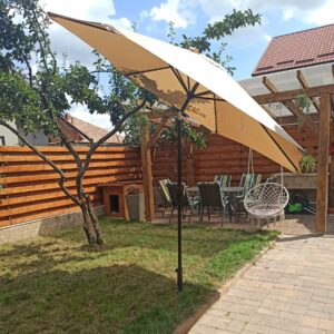 Va rugam sa retineti ca recomandam tratarea materialul umbrelei cu un spray pentru impermeabilizare, daca aceasta va fi expusa ploilor abundente.
