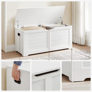 A könnyen kezelhető 2 kivágott oldalfogantyúnak köszönhetően ez a tárolóhellyel rendelkező pad kényelmesen és könnyedén mozgatható oda, ahol további tárolóhelyre van szüksége.
