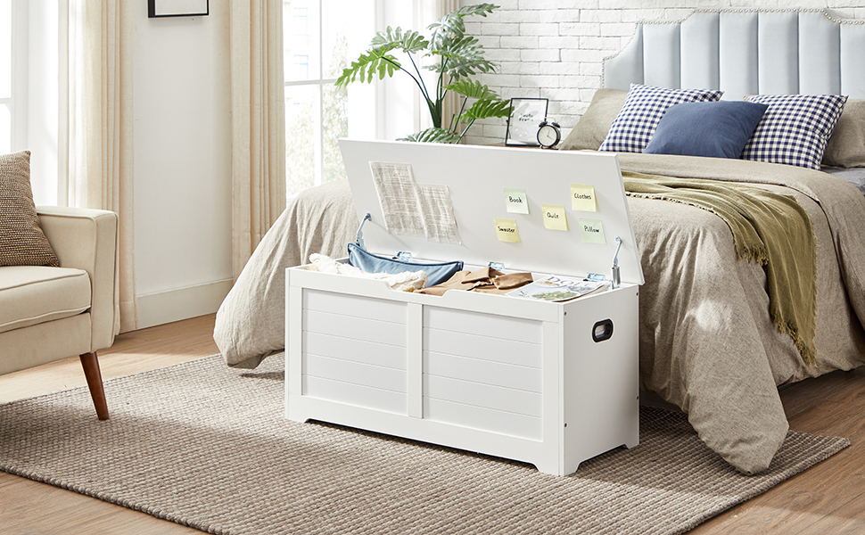 Ez a 40 x 100 x 46 cm-es fedeles tárolódoboz egy tágas rekesszel rendelkezik, ahol tárolhatja ágyait, párnáit, ruháit és könyveit, hogy a hálószobája rendben legyen.