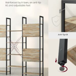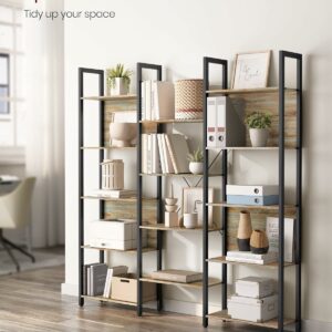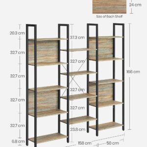 VASAGLE Könyvtár 14 fapolccal, fém kerettel, 24x158x166cm, ipari stílusú, tölgy és fekete
