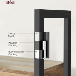 A robusztus acél és az ellenálló forgácslapok stabil szerkezetet alkotnak, amelyet tovább erősítenek a hátoldalon található X-rudak. A könyvtár polconként akár 10 kg-ot is elbír, összesen 140 kg-ot.