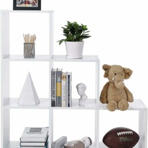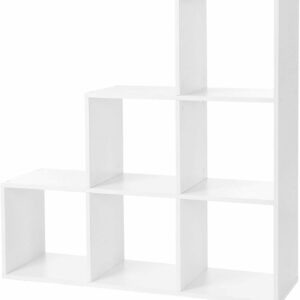 VASAGLE Könyvespolc, 6 polcos, dekorációs tárolóval, fa, 29x98x98cm, fehér