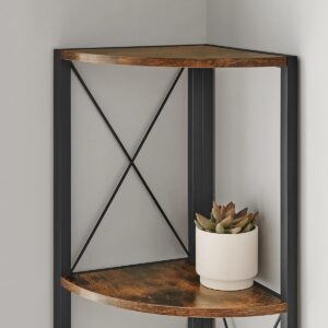 Helytakarékos és vonzó: ez a sarokpolc a padlón a legtöbbet hozza ki az üres sarkokból! A rusztikus barna polcokkal és fekete, X-alakú sávokkal egy kis karaktert is ad