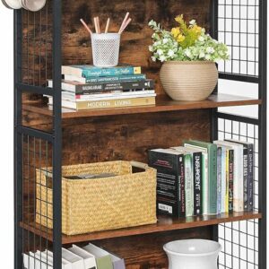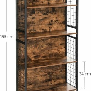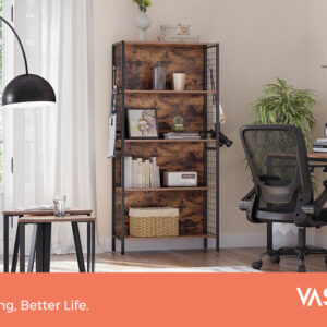 Az elegáns matt fekete vonalak, a friss rács kialakítás és a rusztikus barna polcok – mindezek az elemek együtt jelennek meg ebben a könyvespolcban, hogy kellemes megjelenést kölcsönözzenek terének.